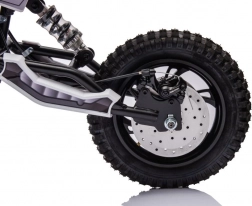 Deze elektrische crossmotor voor kinderen is gebouwd voor avontuur. Dankzij het robuuste frame, het brede stuur en het diepe bandprofiel kan hij overweg met oneffenheden, grind en aarde. De 36V elektrische aandrijving zorgt voor soepele acceleratie zonder geluid en uitstoot – ideaal voor erven, parken en lichte offroad.