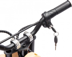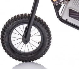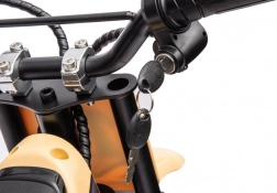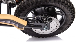 De veiligheid wordt ondersteund door schijfremmen, veervering en massieve offroad-banden met uitstekende tractie. De motor start met een sleutel en de bediening is aangepast aan kinderen – gas aan de gashendel, effectieve remmen en een duidelijke stuurrespons. Ideaal voor de eerste ervaringen met offroad-rijden.