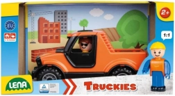 Op zoek naar een stevige auto voor kleine racers en bouwers? De LENA Truckies pick-up overtuigt met zijn stevige constructie, eenvoudige bediening en leuke functies zonder batterijen. De te openen cabine met actief figuurtje stimuleert de fantasie en de ontwikkeling van de fijne motoriek.