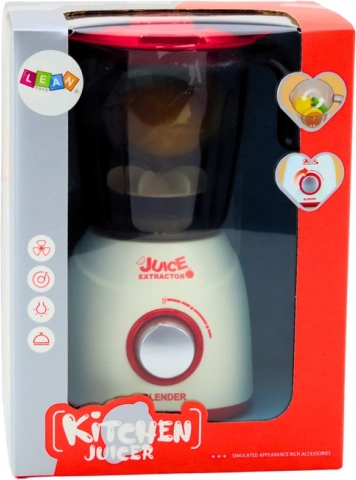 Geef kinderen plezier alsof ze in een echte keuken staan. De kinderblender met licht en geluid bootst een echt apparaat natuurgetrouw na – na het inschakelen gaan de plastic messen draaien, de lampjes branden en klinken effecten die de realistische speelervaring versterken. De set bevat ook drie plastic stukjes fruit voor veilig “mixen”.