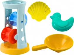De dubbele molenwieltjes brengen elk spel tot leven. De zeef scheidt fijne deeltjes, de trechter maakt het gieten van water of zand en het creëren van effecten mogelijk.