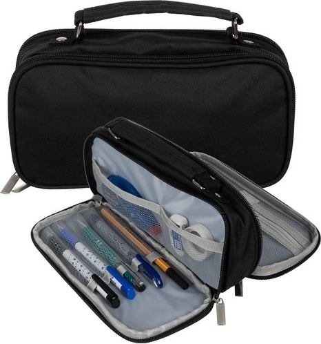 Scheid schrijfwaren, accessoires en elektronica. Tweepuntsritsen zorgen voor snel en gemakkelijk openen vanaf beide kanten.