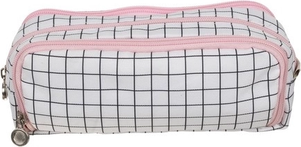 De veelzijdige inzet wordt gewaardeerd door scholieren, studenten en professionals. De etui is geschikt voor school, kantoor, thuisorganisatie en reizen – je bergt er ook cosmetica, kabels, opladers en andere kleinigheden in op. Het elegante geruite uiterlijk met roze bies onderstreept je stijl.