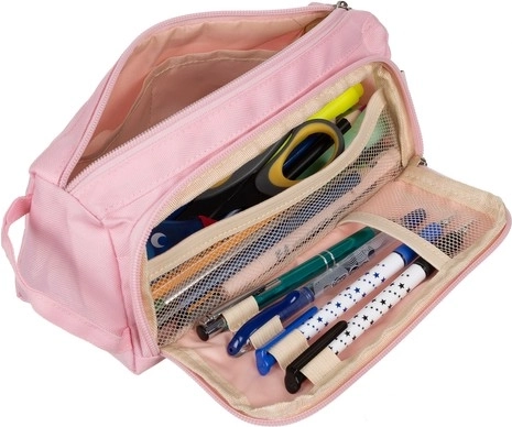 Deze etui biedt één hoofdcompartiment dat eenvoudig kan worden onderverdeeld in secties voor efficiënte organisatie. De hoofdruimte is ruim genoeg voor pennen, potloden, schaar en andere essentials. Binnenin bevinden zich twee vakken die ideaal zijn voor kleine items.