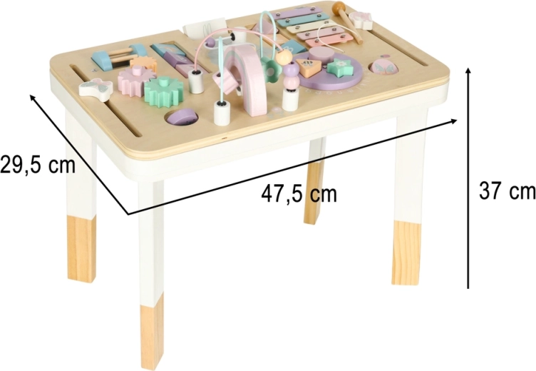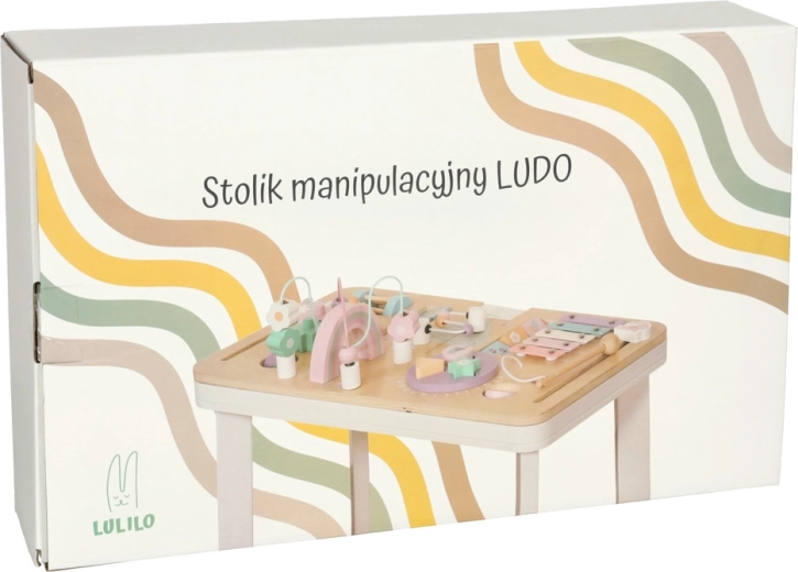 De houten leertafel LULILO LUDO is een klein thuis “educatief centrum” dat gevarieerde zintuiglijke prikkels biedt en zelfstandig spel stimuleert. Pasteltinten, zachte randen en een stabiele constructie creëren een veilige omgeving voor nieuwsgierig ontdekken.