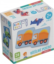 Ontdek het leuke en educatieve memoryspel met vervoersmiddelen van KukiKuk. De set bevat 24 grote kaarten van 11 × 11 cm van stevig 2 mm karton, ideaal voor kleine kinderhanden. Het spel ontwikkelt geheugen, opmerkzaamheid en woordenschat en bevat ook tips voor ouders en leerkrachten voor extra activiteiten en spelvarianten. Gemaakt in Tsjechië, aanbevolen voor kinderen van 2–6 jaar.