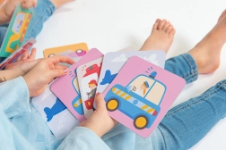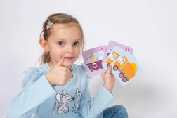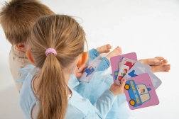 In de verpakking vind je inspirerende tips voor activiteiten: de eerste duo’s zoeken, verhalende spelletjes, het nadoen van voertuigg geluiden, tekenen naar de kaarten en oefeningen in opmerkzaamheid. Het spel ondersteunt de ontwikkeling van fijne motoriek, wereldontdekking en communicatieve vaardigheden.