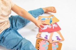 24 stevige kaarten van 2 mm karton met een afmeting van 11 × 11 cm zijn bestand tegen intensief spelen thuis en op de opvang/kleuterschool.