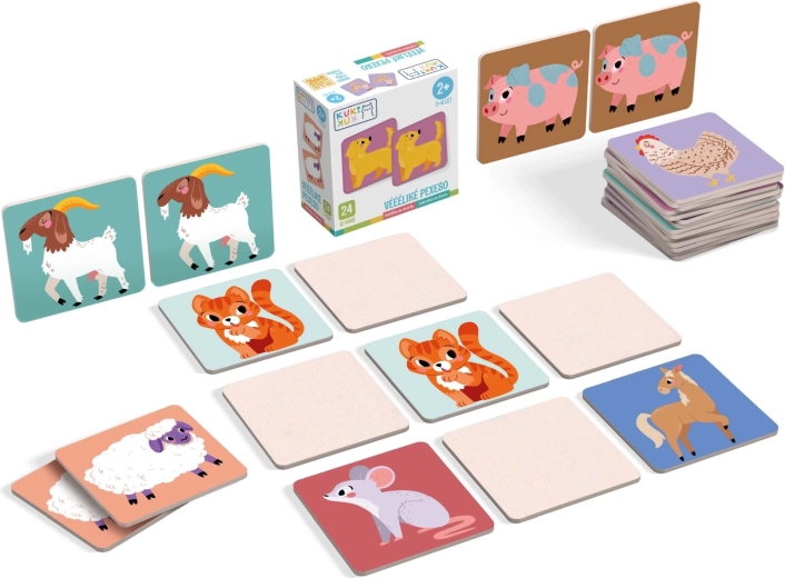 Ontdek het leuke leerspel voor de allerkleinsten – Vééééé grote memory Boerderijdieren. De grootformaat kaarten van stevig karton stimuleren geheugen, associaties en herkenning van dieren. De set bevat 24 kaarten van 11 × 11 cm en een brochure met speltips en activiteiten. Ideaal voor kinderen van 2–6 jaar, gemaakt in Tsjechië.