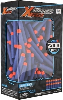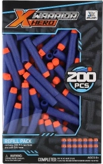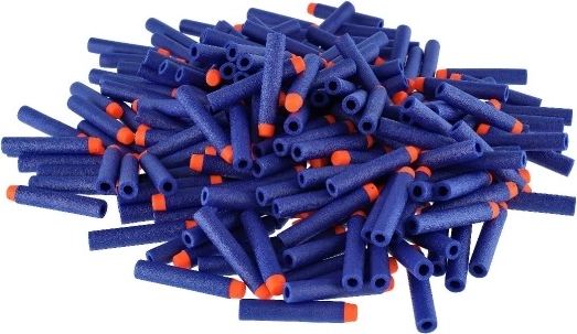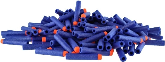 Vul je voorraad aan voor je blastergevechten: deze set bevat 200 foam darts in blauw met een oranje punt voor betere zichtbaarheid. De darts zijn gemaakt van zacht, duurzaam schuim, waardoor ze geschikt zijn om binnen en buiten mee te spelen en na de actie makkelijk terug te vinden zijn.