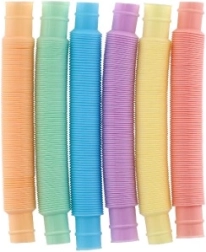 Deze kleurrijke set van 6 plastic buisjes biedt eindeloze speelmogelijkheden – van eenvoudig uittrekken en indrukken tot het maken van originele creaties. Dankzij de flexibele harmonicastructuur maken de buisjes tijdens beweging leuke geluiden die zintuiglijke prikkels en concentratie ondersteunen.