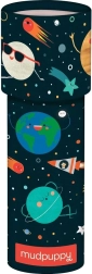 Kijk door het oculair en ontdek de oneindige patronen van het heelal. Door aan de buis te draaien lichten kleurrijke figuren van planeten, kometen en raketten op, die de verbeelding en nieuwsgierigheid van kinderen prikkelen. De caleidoscoop is gemaakt van hoogwaardig karton en voldoet aan de veiligheidsnormen CPSIA, ASTM en CE.