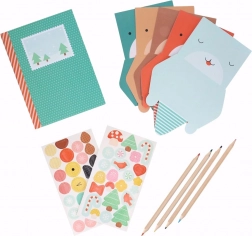 De set bevat 12 dierlijke briefjes, een dagboek, 2 vellen stickers en 4 kleurpotloden – klaar om te creëren zodra je het opent.