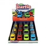 Elk voertuigje rijdt met een vliegwiel – duw het kort aan en het schiet vooruit zonder batterijen. Perfect voor dynamisch spel, overal.