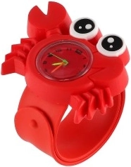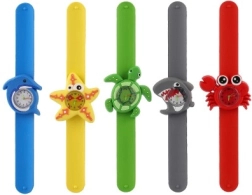 Leuke kinderhorloges met motieven van zeedieren maken tijd leren lezen makkelijk en dragen comfortabel. Dankzij de zelfomwikkelende (slap) siliconen band doe je het horloge met één “tik” om. Kleurgecodeerde wijzers helpen kinderen de tijd beter af te lezen en de geïntegreerde LR626-batterij zorgt voor direct gebruik. Verkrijgbaar in 5 vrolijke motieven – dolfijn, zeester, schildpad, haai en krab.