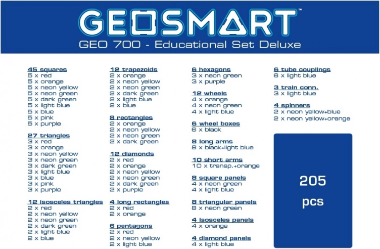 De GeoSmart educatieve bouwset is ideaal om creativiteit en leren bij kinderen te stimuleren. De set bevat: