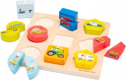Ontdek verschillende vervoermiddelen met deze kleurrijke insteekpuzzel. De puzzel bevat een boot, vliegtuig, ambulance, schoolbus, brandweerwagen, graafmachine, taxi, tractor en politieauto. Het is een perfecte game die niet alleen helpt bij het herkennen van vormen en kleuren, maar ook het geheugen oefent en de fijne motoriek van kinderen ontwikkelt.