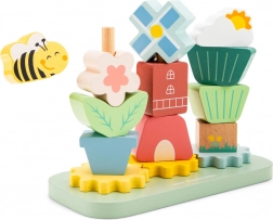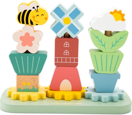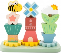 Houten stapelspeelgoed Molenhof is ideaal voor kinderen vanaf 12 maanden. Het bevat kleurrijke houten onderdelen van beukenhout die kinderen gemakkelijk kunnen stapelen. Creatief speelplezier dankzij elementen zoals bloemen, bomen, windmolens en bijtjes, die op de basisplaat met staafjes kunnen worden gestapeld.