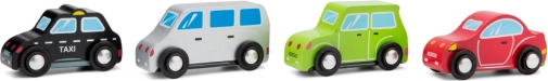 Deze set van vier kleurrijke houten autootjes is ideaal voor kinderen vanaf 18 maanden en perfect voor de ontwikkeling van de fijne motoriek en het stimuleren van fantasierijk spel.