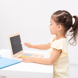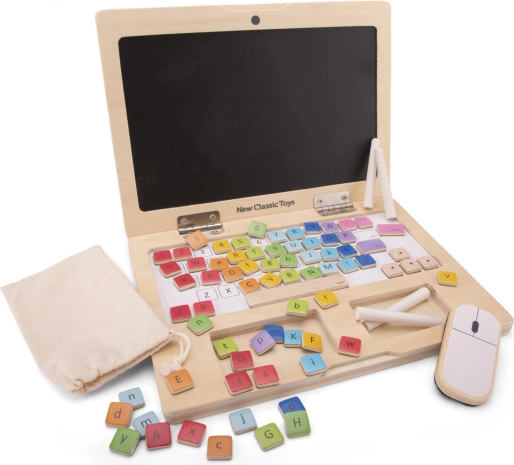 Laat je kind de wereld van letters en cijfers ontdekken met deze houten laptop, die geen batterijen of opladers nodig heeft. Alle letters, cijfers en toetsen zijn magnetisch, waardoor ze eenvoudig aan de onderkant van de laptop kunnen worden bevestigd.
