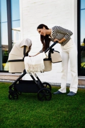 De MoMi GISELLE 2-in-1 is een kinderwagen die u jarenlang van dienst zal zijn. Dankzij de onderdelen die bij de kinderwagen horen, kunt u de wieg voor kleinere kinderen gebruiken en deze, na het wisselen van de zitting met behulp van geheugenknoppen, eenvoudig omzetten in een wandelwagen.