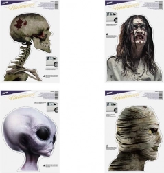 De stickers zijn ideaal voor ramen, vitrines, spiegels en tegels en dankzij het hergebruik kun je ze jaar na jaar inzetten. Motieven worden geleverd afhankelijk van de actuele voorraad (een specifieke variant kan niet worden gekozen); reken op griezelige schedels, mummies, zombies en andere Halloween-illustraties.