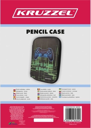 Stijlvolle schooletui met 3D gamepad-motief biedt een duurzame EVA-constructie, een dubbele rits voor comfortabel openen en een doordachte indeling binnenin. Je vindt er 2 netvakken, 6 lussen voor schrijfwaren en een ruime compartiment waar ook een tablet tot 8,5″ in past. Het gamerdesign met de tekst “LET’S PLAY A GAME” zal alle gameliefhebbers aanspreken. (Schrijfbenodigdheden niet inbegrepen.)