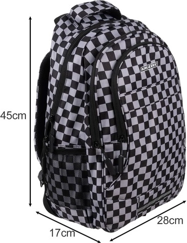 Zoek je een veelzijdige school‑ of stadsrugzak die duurzaam, comfortabel en tegelijk opvallend is? Deze zwart‑witte ruitjes KRUZZEL‑rugzak combineert stevig Oxford 600D met een ademend rugpaneel en EPE‑padding voor meer comfort en bescherming van de inhoud. Twee mesh zijvakken bieden plaats aan een waterfles, terwijl de voorzak en de reflecterende band de praktische bruikbaarheid en veiligheid in het donker verhogen.