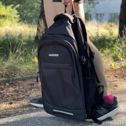 De ruime rugzak van 45 l van stevige Oxford 600D-stof is bestand tegen mechanische slijtage en slecht weer. De binnenkant is afgewerkt met Oxford 210D en de rug is over het hele oppervlak gevuld met EPE-schuim voor extra comfort en bescherming van de inhoud tegen schokken. Een reflecterende band zorgt voor betere zichtbaarheid.