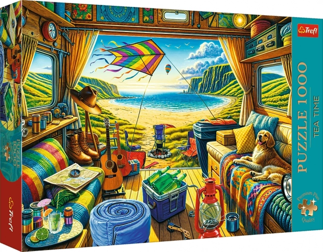 Stap binnen in het knusse interieur van een caravan met uitzicht op zee en geniet van ontspannen puzzelmomenten. De TREFL Premium Plus-serie biedt precisie-afwerking, stevig karton en exacte uitsnijdingen, waardoor de stukjes goed blijven zitten en alleen passen waar ze horen. In de verpakking zit ook een voorbeeldposter voor makkelijker leggen.