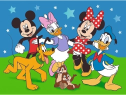 Ontdek het plezier van puzzelen met het kleurrijke motief van de geliefde personages Disney: MICKEY, MINNIE, DONALD, DAISY en PLUTO. De puzzel stimuleert de fijne motoriek, geduld en logisch denken en ontwikkelt tegelijkertijd het herkennen van kleuren en vormen.