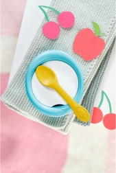 De set bevat een kom, lepeltje en 5 plaatjes met verschillende soorten eten, die rollenspel, fijne motoriek en verbeelding stimuleren. Alles is licht, veilig en gemakkelijk te reinigen, ideaal voor dagelijks spelen.