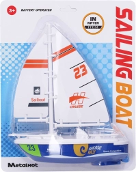 De boot is verkrijgbaar in twee aantrekkelijke kleuren - blauw en wit. Voor de werking zijn twee AA-batterijen nodig, die niet bij de verpakking inbegrepen zijn, en hij is uitgerust met een ON/OFF-schakelaar boven de motor voor gemakkelijke bediening. Het biedt een realistische race-ervaring die zowel kinderen als volwassenen zal aanspreken.