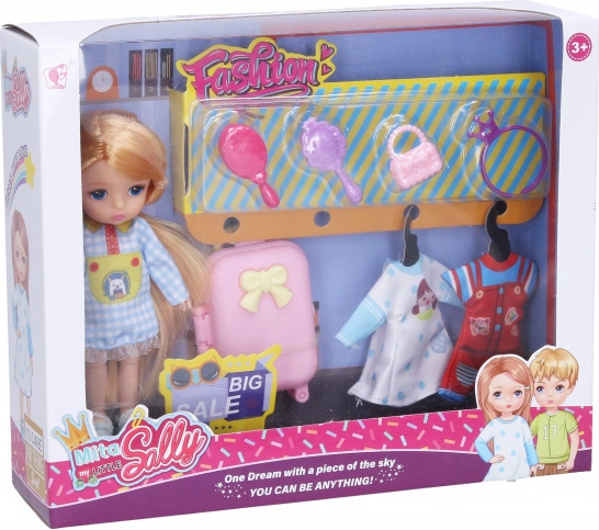 Reizende pop van 13 cm is de perfecte metgezel voor elk meisje dat avontuur zoekt. Bevat een reiskoffer, 2 outfits, 2 kammen, handtas en kroontje.