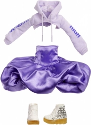 Deze pop valt op met een paarse outfit met een glanzende rok en stijlvolle leggings. Haar lange paarse haar en trendy uiterlijk zijn ideaal voor modebewuste spelletjes en styling.