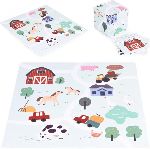 Het vrolijke boerderijmotief met dieren, schuur en weggetjes stimuleert de verbeelding en zintuiglijke ontwikkeling. Met 21 delen maak je een stabiel speeloppervlak en dankzij de randstukken met “tandjes” kun je ook eenvoudige 3D-vormen bouwen. Het EVA-materiaal voelt prettig aan, is anti-slip en makkelijk schoon te maken – afnemen met een vochtige doek is voldoende.