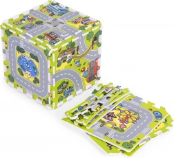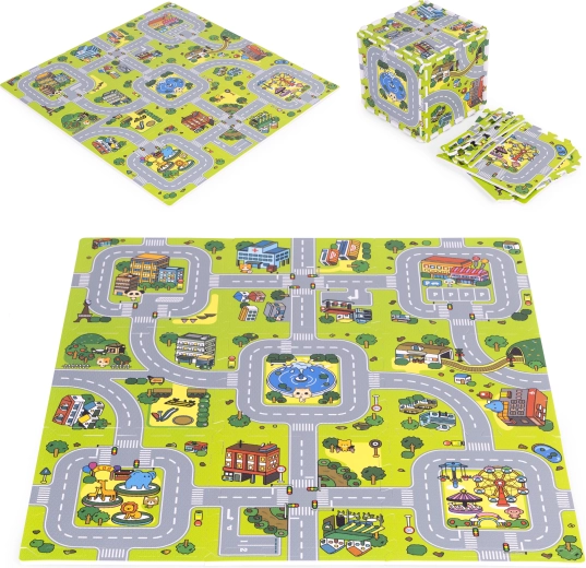 Deze hoogwaardige speelmat voor kinderen van duurzaam EVA-schuim creëert een speels stadsdecor met wegen, gebouwen en parken – ideaal voor auto’s, figuurtjes en creatieve verhalen. De delen grijpen in elkaar als een puzzel, zodat je het kleed snel monteert en weer opbergt. Het materiaal is zacht, flexibel en antislip, dempt kleine valpartijen en beschermt tegen de kou van de vloer.