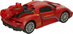 Met één druk op de knop verandert de rode auto in een robot die klaar is voor elke uitdaging.