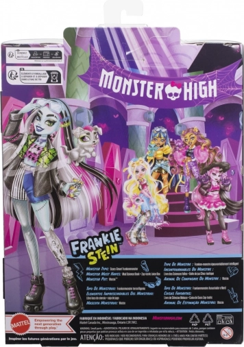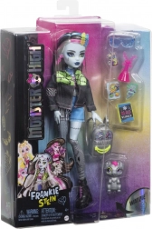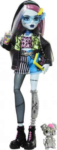 Maak kennis met de iconische MONSTER HIGH-studente – Frankie Stein. Deze pop valt op door een indrukwekkende mix van punk en techno: denimjack, shorts, opvallende oorbellen in de vorm van bliksemschichten en zwarte enkelboots met roze veters. Dankzij de gewrichten om te poseren creëer je moeiteloos coole scènes en verhalen.