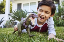De draaiknop start dynamische bewegingen en geluiden: schuif je naar voren, dan duikt de kop omlaag voor een bijteffect met grommen; draai je terug, dan trekt de kop zich terug met een brul en wordt de gevechtsmodus geactiveerd met uitgeklapte staartstekels. Met de verborgen code koppel je aan de Jurassic World-app, waar je een digitale versie van de dinosaurus en extra interactieve content ontgrendelt.