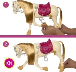 Ga mee op onvergetelijke avonturen met Barbie en haar dansende paard, die urenlang plezier en creativiteit biedt. Het paard kan meer dan alleen dansen - het speelt ook muziek en reageert op aanrakingen. Met 12 verschillende accessories kunnen kinderen eindeloze verhalen vol fantasie beleven.