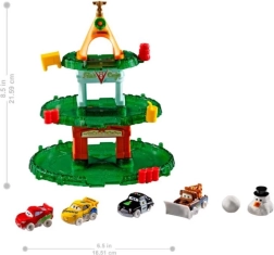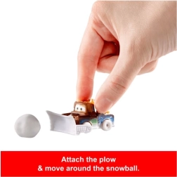 - Mini-voertuigen: Bliksem McQueen, Cruz Ramirez, Sheriff, Takel met aangehechte sneeuwploeg en een gigantische sneeuwbal om op te ruimen!