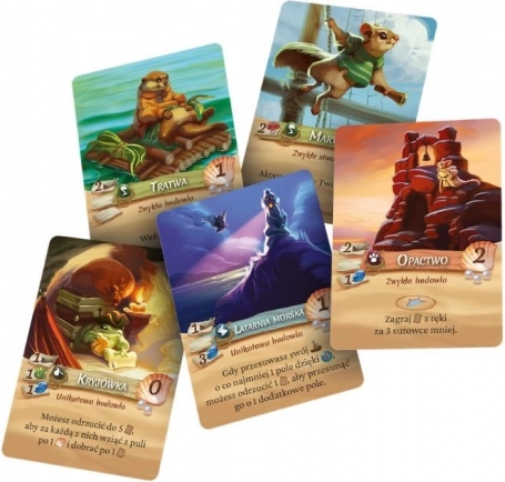 Everdell: Verre Kust brengt een frisse wind in het geliefde universum – zet koers naar de vuurtoren, verken kaarttegels en verbind dankzij nieuwe mechanismen je stadsontwikkeling met een zee-expeditie. Elke beslissing telt: wanneer je arbeiders in te zetten, welke kaarten te spelen en waarheen je het schip stuurt om schatten en overwinningspunten te bemachtigen.