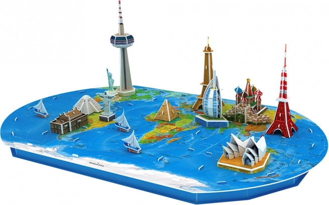 3D-puzzel wereldkaart met de beroemdste bouwwerken