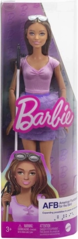Barbie Fashionistas-poppen vertegenwoordigen de diversiteit van de modewereld met trendy outfits die eindeloze speelmogelijkheden en zelfexpressie bieden. Deze pop, de eerste blinde Barbie, is ontwikkeld in samenwerking met de American Foundation for the Blind en ondersteunt blinden door een realistische weergave van een blinde of slechtziende persoon.