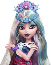 Maak je klaar voor het Monster Fest, het meest geweldige muziekevenement van het jaar, met de Monster High pop Lagoona Blue. Deze stijlvolle zee-monstermeiden in haar outfit geïnspireerd op koraalriffen en met een glinsterende rok is klaar om te duiken in een oceaan van geluiden en de hele nacht te genieten van eten, dansen en heel veel foto’s.