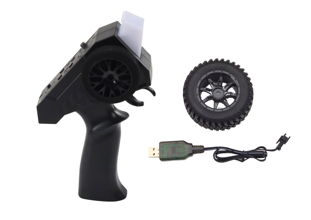 Het voertuig is ook uitgerust met werkende voor- en achterlichten, wat niet alleen bijdraagt aan de realistische uitstraling, maar ook de speelmogelijkheden vergroot bij weinig licht of in het donker. De besturing gebeurt via de modernste 2.4G afstandsbediening, die nauwkeurige controle over het voertuig biedt. De afstandsbediening maakt volledige bewegingsvrijheid en tweestaps snelheidsaanpassing mogelijk, zodat je het tempo kunt afstemmen op je individuele behoeften en voorkeuren. De remfunctie op de trekker maakt bovendien snel en veilig stoppen mogelijk en een vlotte reactie op obstakels.
