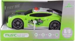 Sportieve plastic auto op batterijen met licht- en geluidseffecten is het ideale speelgoed voor kleine coureurs.