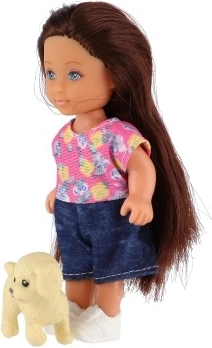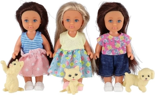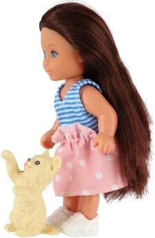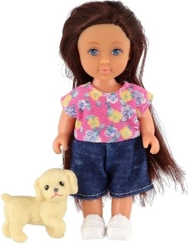 Schattige pop met huisdiertje voor dagelijks speelplezier. Dankzij het compacte formaat van 12 cm, een stevig lichaam en bewegende delen ligt ze goed in kinderhanden en stimuleert ze creatief spel, fantasie en sociale vaardigheden. Geschikt voor kinderen vanaf 3 jaar, verpakt in een geschenkdoos.