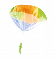 Gooi, kijk en vang! De lichtgevende parachutist met parachute zorgt voor eindeloos actieplezier en leert kinderen tegelijk de principes van dalen en zweven. Gooi hem gewoon omhoog – de parachute ontvouwt zich en vertraagt de val net als bij een echte parachutist. Dankzij het compacte figuurtje van 12 cm is het speelgoed geschikt voor de tuin, het park en binnen.